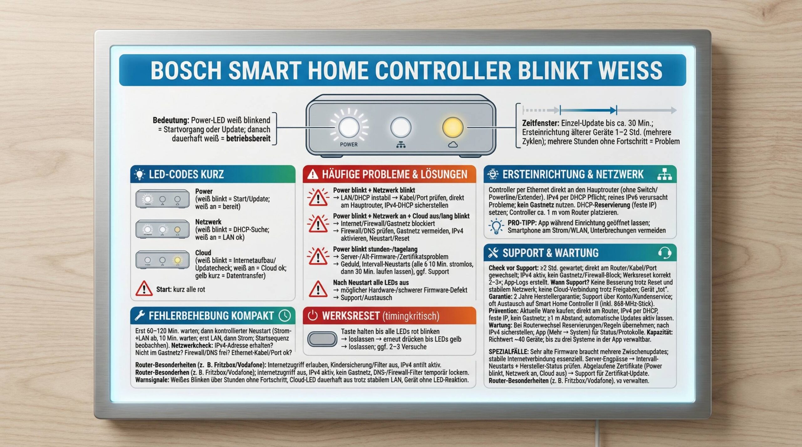 Dein Bosch Smart Home Controller ist das Herzstück deiner Automatisierung. Wenn die Power-LED plötzlich weiß…